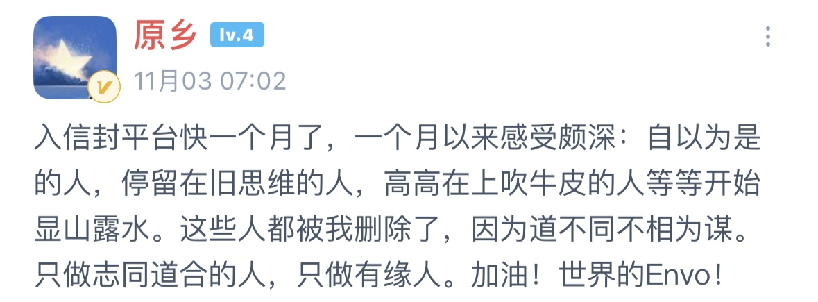 她说:“我不是天才,我只是从不认命。Envo也不该只是大佬玩的,它该属于每一个想翻身的人。”