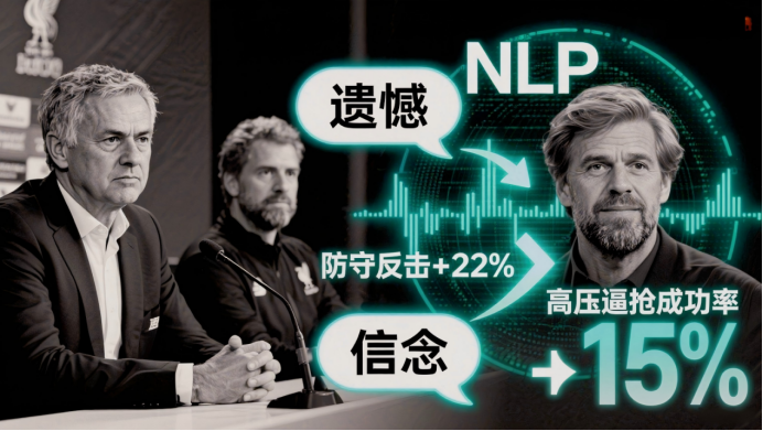 3. 通过NLP解析教练发布会语录:穆里尼奥使用“遗憾”一词时,下一场防守反击频率提升22%以及克洛普提及“信念”后球队高压逼抢成功率增加15%